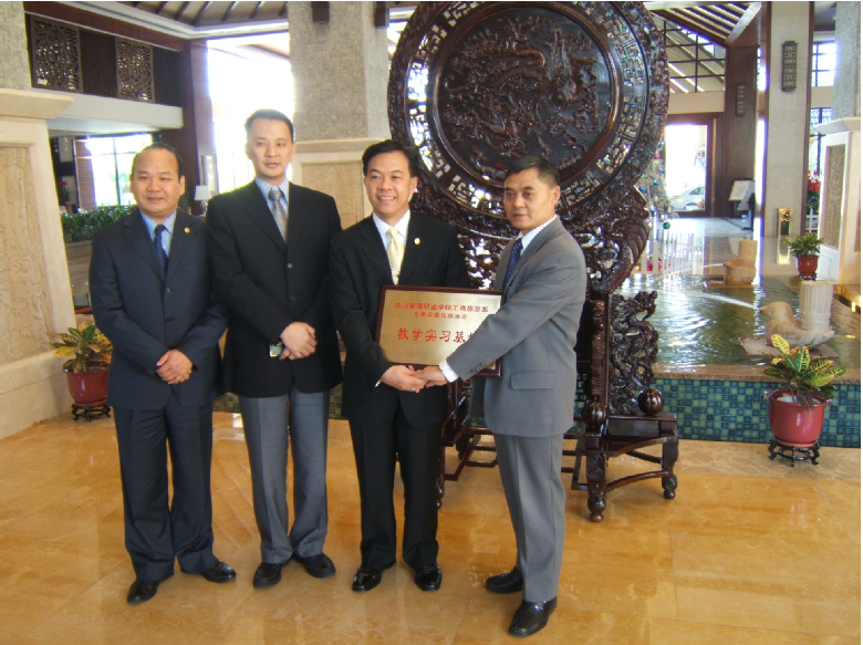 从2008年11底到12月初,工商旅游系在广东佛山名都大酒店、虎门丰泰花园酒店两家五星级酒店陆续举行了实习基地挂牌仪式。受工商旅游系委托,管理职业学院党委副书记邹建成等人出席了挂牌仪式。两家酒店的总经理等高层领导热情地接待了我校一行,双方就如何更好、更有效利用实习基地,如何深入做好校企合作做了进一步的协商,并在两家五星级酒店领导的陪同下参观了酒店的所有工作岗位。