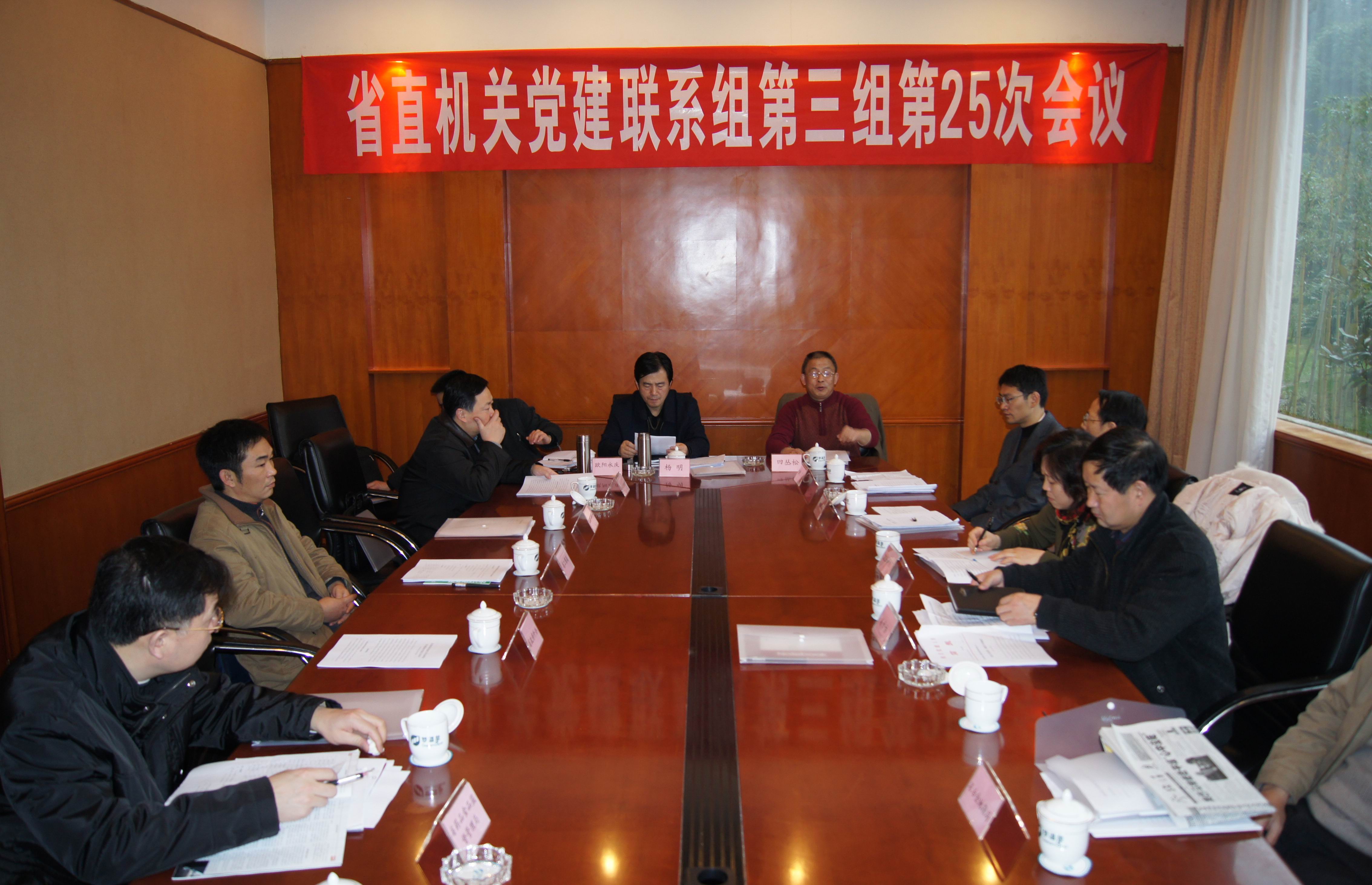 12月10日-11日,以我校院为组长单位、由我校院机关党委负责承办的省直机关党建联系组第三组第25次会议在雅安召开。会议以“学习贯彻党的十七届四中全会精神,以改革创新精神进一步加强机关党的建设,推动省直机关党建工作走在全省基层党建工作的前头”为主题,就省直机关党建工作进行了交流和探讨。省直机关工委副巡视员杨明同志出席会议,省政府办公厅、省国土资源厅等13个单位的机关党委负责同志参加了会议,会议由校院委委员、机关党委书记田丛松同志主持。