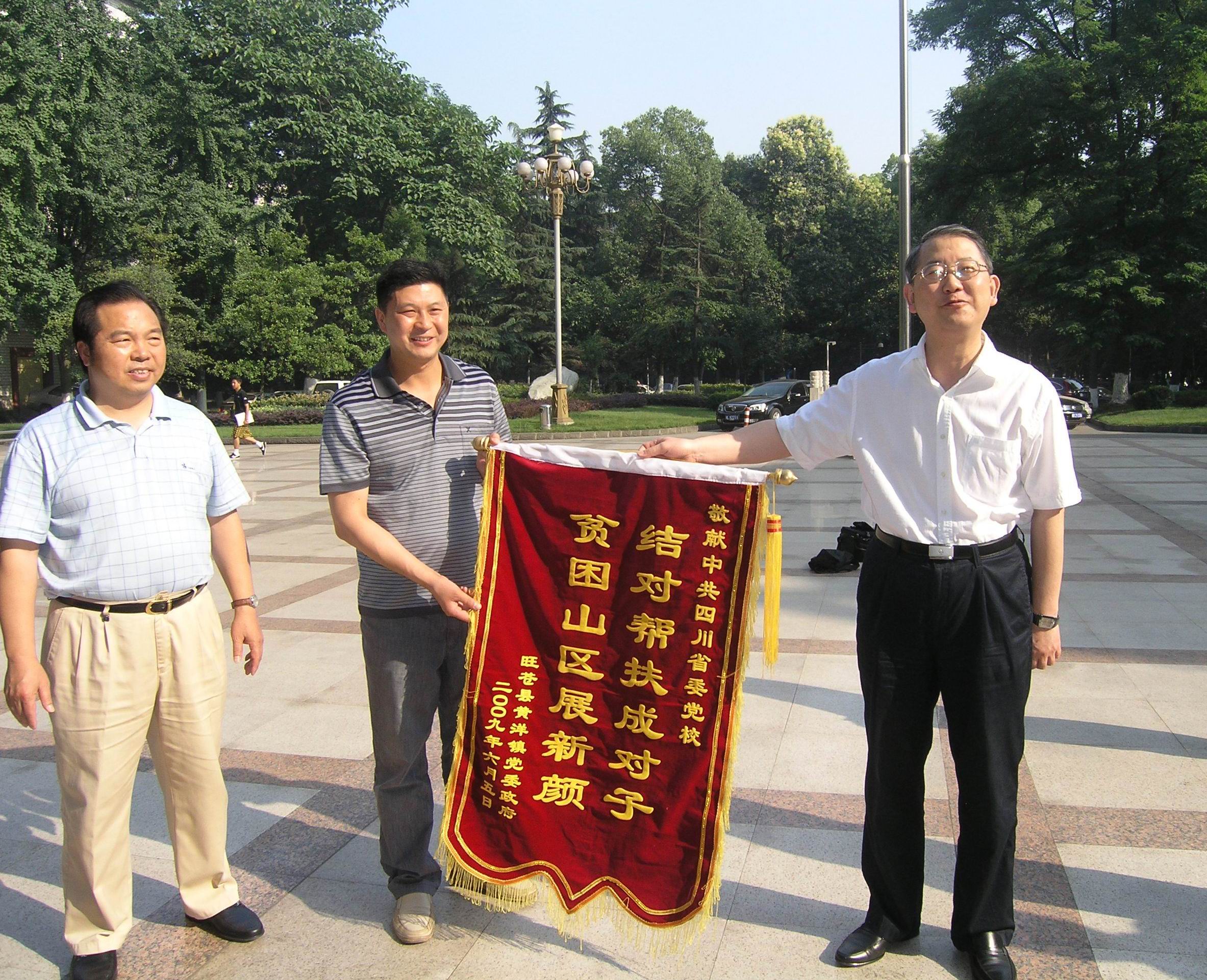 这次邀请旺苍县黄洋镇村社干部学习培训是落实我校院对对口帮扶点的帮扶措施之一。培训的内容主要分为:一是采取请专家教授讲课。6月5日上午,机关党委特邀了区域经济教研部教授孙超英同志,为他们讲世界金融危机与农村经济发展,这也是孙超英教授继去年11月份后再次为他们讲课。在开课前,校委委员、机关党委书记田丛松同志作了讲话,他强调,为贯彻落实省委、省政府关于定点扶贫的有关精神和校(院)委的要求,我们一定要把定点帮扶工作做好、做实,要为定点帮扶的黄洋镇镇政府、中心校及黄洋村村党支部的建设作出党校、行政学院应有的贡献,把省委、省政府的指示、要求落实到实处;二是采取实地考察。6月5日下午,组织全体村社干部前往成都市新农村建设示范点——三圣乡实地考察,使他们了解新农村建设、发展的全部过程;三是组织参观。6月6日上午,组织全体村社干部前往大邑建川博物馆参观,对他们进行革命传统教育。