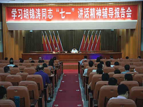 为贯彻落实中央、省委关于认真学习胡锦涛同志“七一”讲话精神的要求,帮助校院党员干部和教职工深入理解和深刻领会胡锦涛同志在庆祝中国共产党成立90周年大会上的讲话精神,进一步增强做好党的干部教育培训工作、在新的历史起点上全面推进中国特色社会主义伟大事业的责任感和使命感,7月11日,校院在蜀光大厦国际学术演讲厅召开学习胡锦涛同志“七一”讲话精神辅导报告会,副校院长郭伟同志作题为《学习锦涛同志“七一”讲话,推进中国特色社会主义事业》的专题辅导报告,校院委中心学习组成员、在职教职工和离退休总支、支部书记近300人听取了报告,报告会由校院委委员、机关党委书记肖敬军主持。