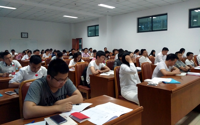 机关党委专职副书记魏波以“端正入党动机,为中国人民谋幸福,为中华民族谋复兴”为题为入党积极分子授课。校院教职工、在读硕士研究生和中建五局第三建设公司等70余名入党积极分子参加培训。