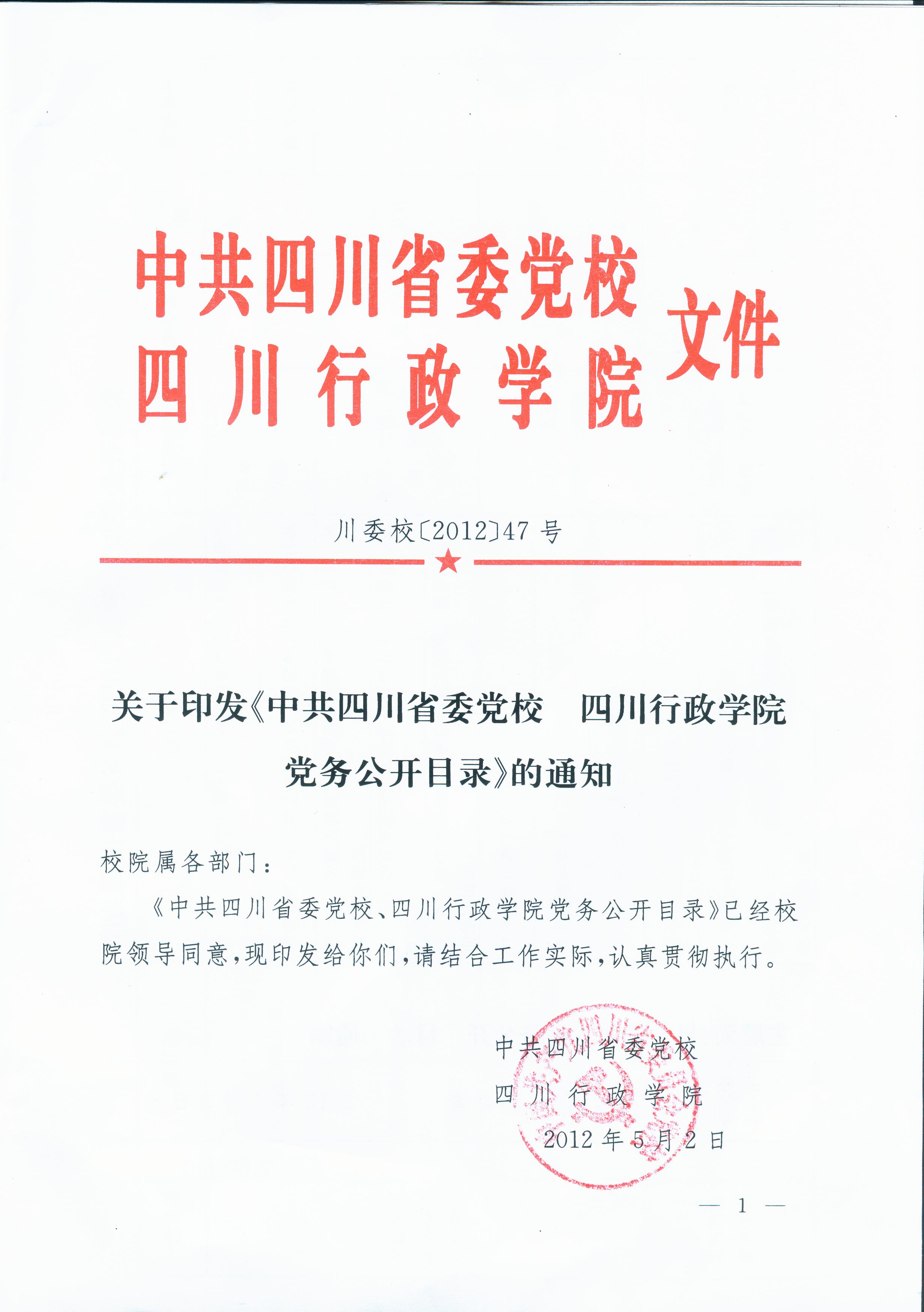 关于印发《中共四川省委党校 四川行政学院党务公开目录》的通知