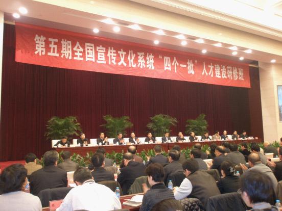 11月28日—12月2日,第五期全国宣传文化系统“四个一批”人才建设研修班在京举行,来自全国理论、新闻、文版、文艺界和经营管理、专门技术等方面的500多位同志参加研修。中央政治局委员、中央书记处书记、中宣部部长刘云山在研修期间亲切看望学员、与学员合影留念,并发表重要讲话。中宣部常务副部长、“四个一批”人才工作领导小组组长雒树刚同志作开班动员并作学习贯彻党的十七届六中全会精神的辅导报告。这次研修班的主要任务是,高举中国特色社会主义伟大旗帜,深入贯彻落实科学发展观,认真学习贯彻党的十七届六中全会精神,学习贯彻胡锦涛总书记在中国文联第九次全国代表大会、中国作协第八次全国代表大会上的重要讲话精神,增强文化自觉、树立文化自信,深化文化体制改革,推动社会主义文化大发展大繁荣。