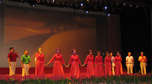 6月30日下午,由校(院)机关党委工会组织的“庆祝中国共产党建党88周年文艺演出”在校(院)大礼堂举行。校(院)各部门党支部、工会小组和各系学生支部选送出18个节目参与了此次演出。图书馆和基础教研部、《理论与改革》杂志社3部门共同倾力打造的表演唱《乡音·乡情》荣获“庆祝中国共产党建党88周年文艺演出”三等奖。同志们声情并茂的演唱,配合着不露痕迹的对形变换、切合意境的精美背景画面以及创意突出的服装搭配一道给了观演者强烈的震撼和感染,展示了三个部门同志良好的精神风貌与昂扬的爱乡、爱国激情,成为整台文艺演出中一道亮丽的风景。