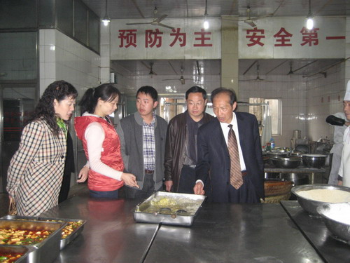 为了确保校院食堂食品卫生安全,保障广大学员和教职工的身体健康,3月27日上午,行政后勤处总支书记冯友谋、副处长温冀、聂素碧带领卫生科的负责人和各饮食中心的负责人一行7人,对东区培训服务中心的学工餐饮部、西区后勤服务中心食堂、西区小卖部进行了食品卫生安全大检查。这次检查的重点是:一是检查各餐饮部和食堂食品安全责任人的落实情况;二是检查食品和原料是否按要求在正规渠道采购;三是检查炊事人员在食品加工操作过程中是否规范;四是检查餐具的消毒情况、食品的留样制度;五是检查食堂室内外环境卫生。