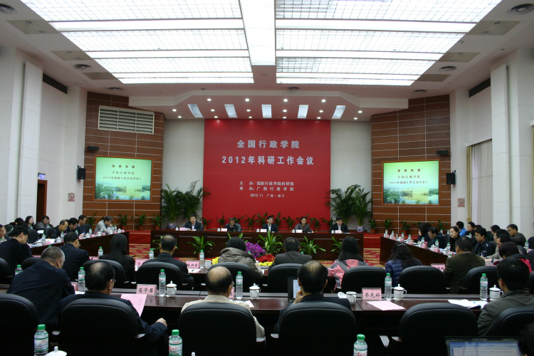 11月29日,全国行政学院2012年科研工作会议在广西行政学院召开。会议由国家行政学院科研部主办,广西行政学院承办。国家行政学院科研部主任许耀桐出席会议并作讲话,国家行政学院科研部科研合作处处长万代玺主持会议。广西、甘肃、新疆行政学院分管副院长,以及全国各省、自治区、直辖市行政学院和新疆兵团行政学院科研处(部)负责同志近60人参加会议。根据学院安排,科研处处长李翔宇代表学院参加会议。