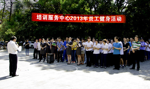为丰富员工的业余文化生活,增强团队的向心力和凝聚力,5月10日下午,培训服务中心在东区篮球场举行了2013年度员工健身活动。行政后勤处处长邹建成出席活动。