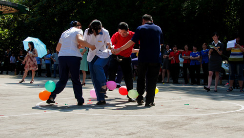 活动共设置“滚雪球”、“真爱永流传”、“踩气球”、“英雄救美”4个项目,这些项目的突出特点就是强调团队配合能力。比赛期间各队队员们各显其能,将自己的运动热情完全挥洒了出来,场面非常热闹,各种笑点频出,比赛现场充满了欢声笑语。经过1个多小时精彩激烈的比赛,最后四项活动各选出一支优胜队。