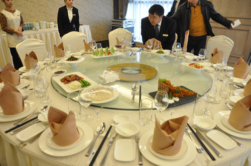 为进一步提高后勤保障服务水平,提升管理能力,培训服务中心采取学习借鉴星级酒店管理经验的做法,于11月21日下午由陈先林、詹光太两位主任带队一行7人赴“康普蕾斯国际酒店”进行了客房和餐饮服务的考察学习。