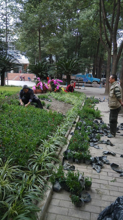 为了营造优美的学习环境,以崭新的校容迎接新学期的到来。根据行政后勤处工作部署,本着“节约”为主的原则。2月25日至27日,物管中心组织员工对校园绿化进行了重新布置,利用现有的花草树木资源对礼堂、蜀光大楼、蜀华大楼、艺术墙等绿化带进行添置共计2000余株。为进一步美化校园环境,推进美丽校园建设出一份力。