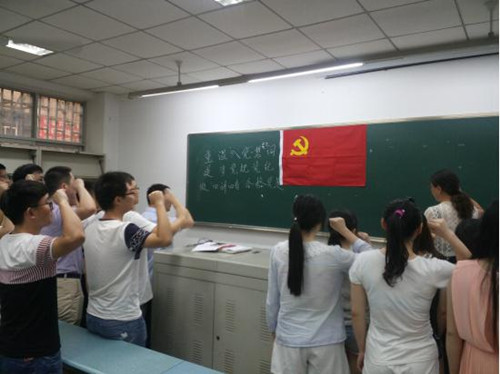 在党课正式开始前,李季带领全体硕士生党员面对党旗重温入党誓词,再一次庄严承诺:我志愿加入中国共产党,拥护党的纲领,遵守党的章程,履行党员义务,执行党的决定,严守党的纪律,保守党的秘密,对党忠诚,积极工作,为共产主义奋斗终身,随时准备为党和人民牺牲一切,永不叛党。