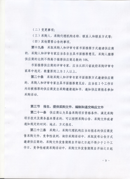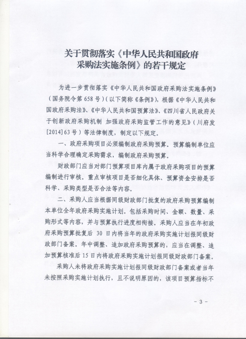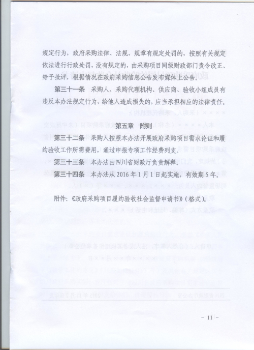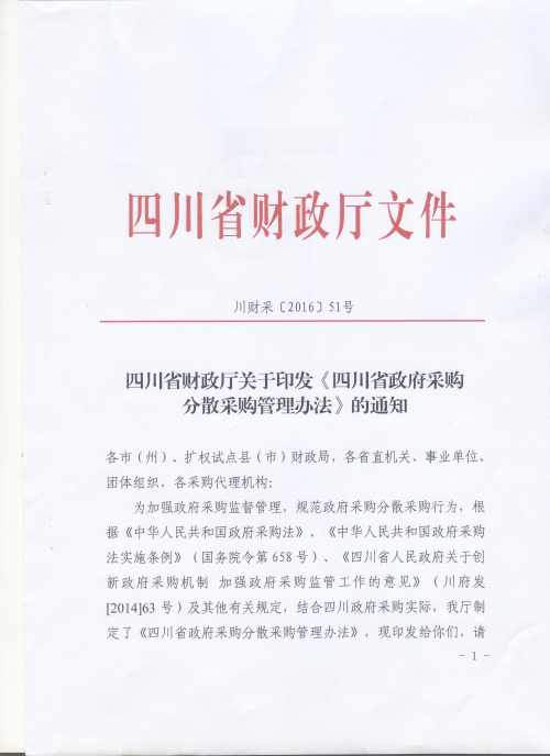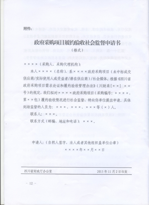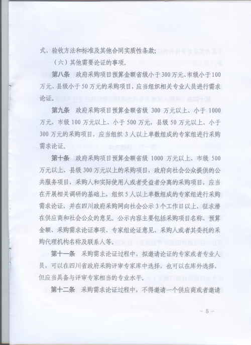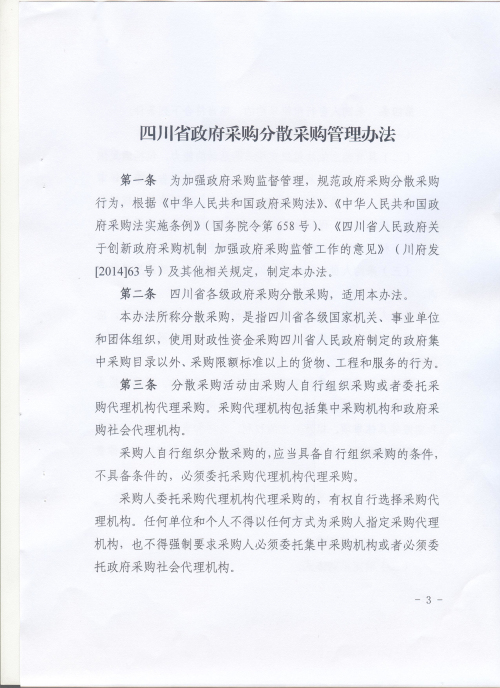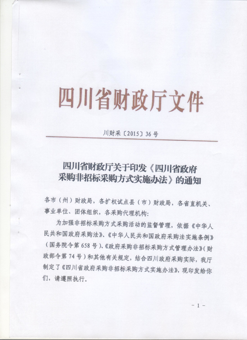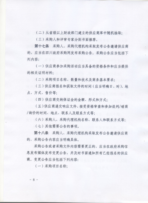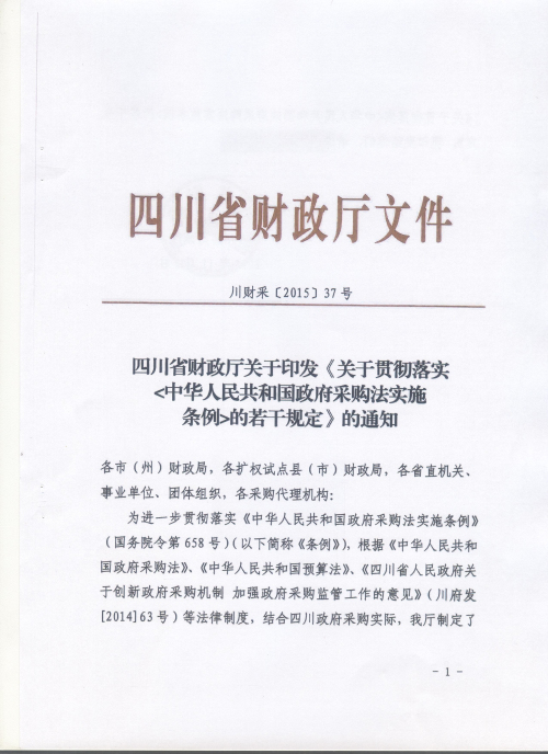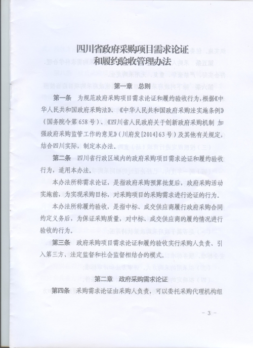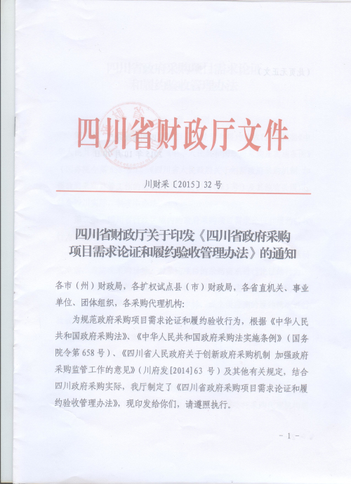 为加强政府采购监督管理,规范政府采购工作要求,现将系列四川省政府采购项目需求论证和履约验收、非招标采购方式实施办法、分散采购管理办法等公布。