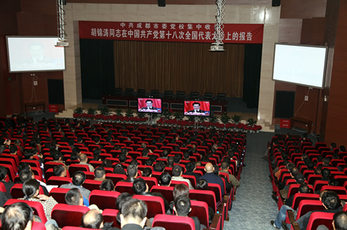 11月8日,中国共产党第十八次全国代表大会在北京开幕,胡锦涛同志代表中共第十七届中央委员会向大会作题为《坚定不移沿着中国特色社会主义道路前进为全面建成小康社会而奋斗》的报告。校院组织党员干部和学员400余人集中收看了党的十八大开幕和胡锦涛同志在中国共产党第十八次全国代表大会上的报告。