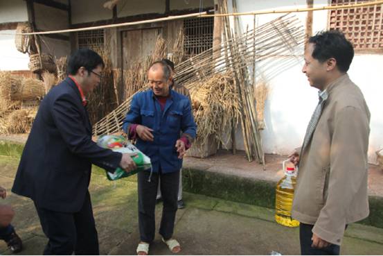 11月9日,校务委员、行政学院副院长蔡良志与部分职工再次来到我校帮扶的龙安乡勇敢村,宣传党委政府的助农兴农政策,了解村民的生产生活情况,并给26户贫困户每户送去大米和食用油,鼓励他们努力开展脱贫自救,早日走上致富之路。