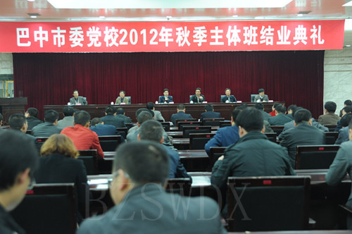 11月9日上午,2012年秋季主体班结业典礼在中共巴中市委党校举行。市委组织部常务副部长张家生出席典礼并讲话,市委组织部副部长、党校常务副校长张登宪主持结业典礼。