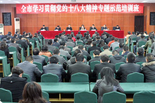 12月13日上午,达州市学习贯彻党的十八大精神专题示范培训班在达州市委党校开班,达州市委常委、组织部部长张健出席开班式并讲话。开班式由达州市委党校党委书记、常务副校长谭盛刚主持。此次培训班学习为期两天,达州市市级有关部门分管党建工作的领导,部分市属国有企业干部、党外干部代表,各县(市、区)委组织部、宣传部、统战部、党校相关负责同志及经开区党政办负责人,部分乡镇党委书记、村(社区)书记、大学生村干部代表等,共68人参加培训。