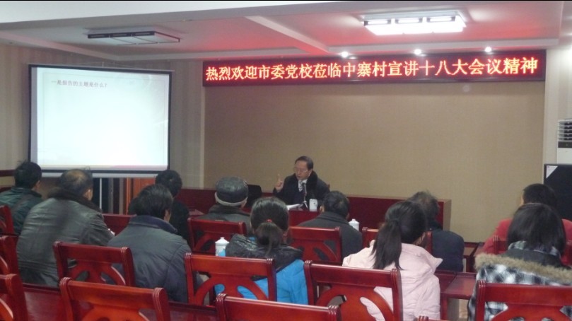 1月7日上午,宜宾市委党校廖礼华副校长到党校“挂包帮”活动联系村——高县可久镇中寨村作了题为《高举旗帜 科学发展 铸就新的辉煌》的报告。中寨村全体村社干部和党员群众一同聆听了宣讲报告。