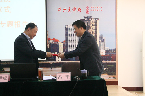 报告会上,市委党校常务副校长冯平为张世虎主席颁发了党校客座教授聘书。