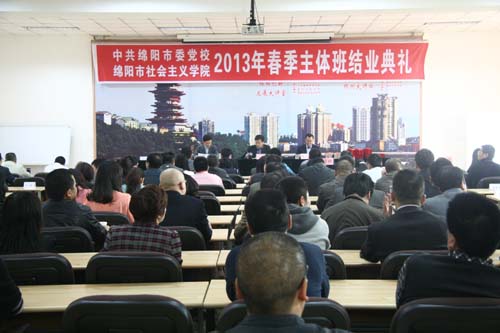 4月12日,中共绵阳市委党校2013年春季主体班结业典礼在学术报告厅举行。市委党校常务副校长冯平、副校长朱云、王欧出席典礼。
