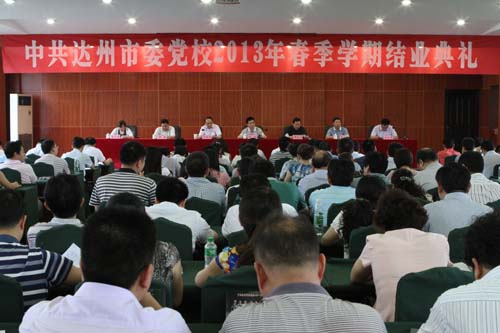 5月24日,达州市委党校举行2013年春季学期主体班结业典礼。副县级领导干部培训班、中青年干部培训班、县级机关行政干部培训班和乡镇党委书记轮训班共164名学员,历经2个月脱产培训,圆满完成各项学习任务顺利结业。结业典礼由市委党校党委书记、常务副校长谭盛刚同志主持。