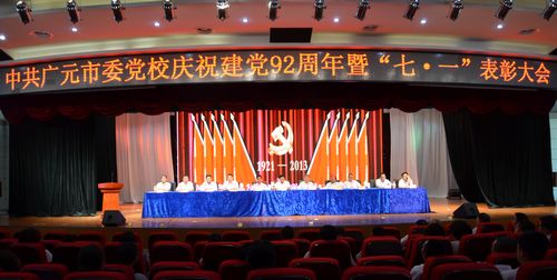 7月1日下午,广元市委党校全校党员干部和教职员工在党校大礼堂隆重集会,召开庆祝建党92周年暨“七·一”表彰大会。今年“七·一”是市委党校启用新校区以来迎来的第一个党的生日,校委会高度重视,机关党委精心组织,以表彰先进及文艺汇演的形式庆祝了党的生日。