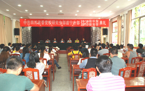 9月11日下午,省委党校研究生部遂宁分部在职研究生班2010级毕业典礼暨2013级开学典礼在市委党校南一楼会议室举行。省委党校校委委员、纪委书记王爱平,省委党校研究生部党总支书记李季,遂宁市委组织部副部长王玲建,市委党校常务副校长石平,副校长罗润平等出席典礼。会议由市委党校副校长刘在文主持。