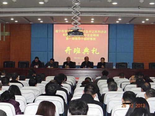 12月26日,遂宁市委党校举行第一期县级、科级干部学习贯彻党的十八届三中全会和习近平总书记系列讲话精神专题培训班开班典礼,市委组织部副部长王玲建出席开班典礼并作重要讲话。市委党校党委书记、常务副校长石平,副校长刘在文、罗润平,教育长杨遂参加典礼。来自全市110名县级干部和50名科级干部参加培训。