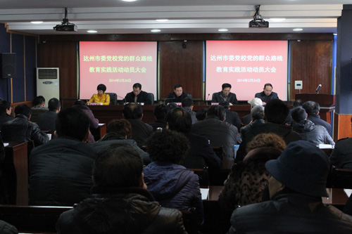 按照达州市委的统一部署, 2月26日上午,达州市委党校召开教职工动员大会,对深入开展党的群众路线教育实践活动进行思想动员和全面部署,大会由党委委员、副校长毕瑛涛主持,党委书记、常务副校长、党的群众路线教育实践活动领导小组组长谭盛刚作动员讲话,市委第十五督导组曾小波一行到会指导。