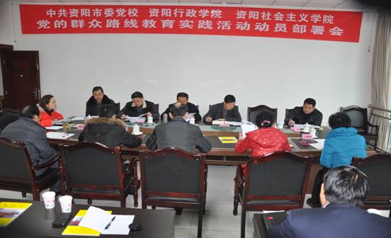 近日,资阳市委党校(行政学院、社会主义学院)召开党的群众路线教育实践活动动员部署会议。市委第三督导组第一组长、市人大常委会副主任王力出席并讲话,党委书记、常务副校院长作动员报告,市委第三督导组成员出席,市委党校党校(行政学院、社会主义学院)全体教职工参加会议。