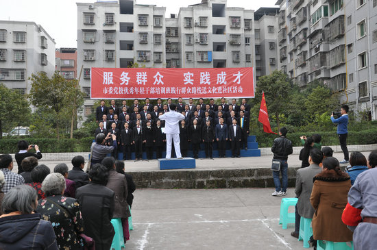 3月11日,广安市优秀年轻干部人才递进培养计划首期培训班全体学员到广安区浓洄街道办事处果丰社区开展送文化进社区活动,举行“服务群众、实践成才”主题文艺演出,为居民送去了丰富的精神粮食,深受群众好评。