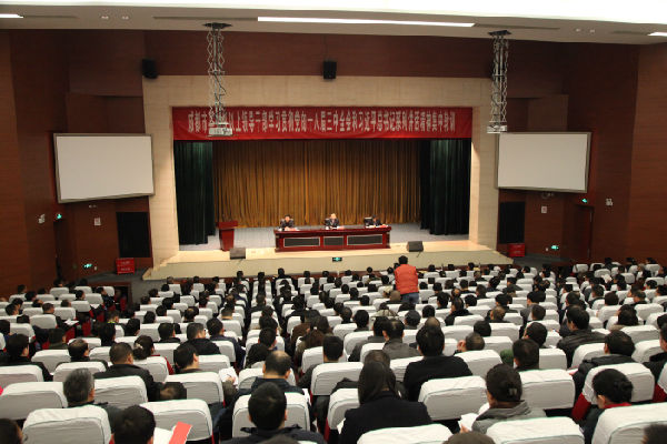 近日,成都市县处级以上领导干部“学习贯彻党的十八届三中全会和习近平总书记系列讲话精神”首期集中轮训班在我校开班。本期轮训班共有我市市管领导干部和市级部门处级以上领导干部379人参加学习培训。