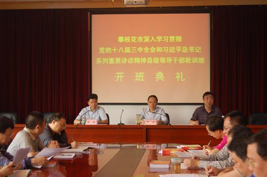 4月2日,攀枝花市深入学习贯彻党的十八届三中全会和习近平总书记系列讲话精神县级领导干部轮训班在市委党校开班。来自全市各县(区)、市级部门的78名县级领导干部参加为期三天的集中轮训。攀枝花市委常委、组织部部长熊伟出席开班典礼。