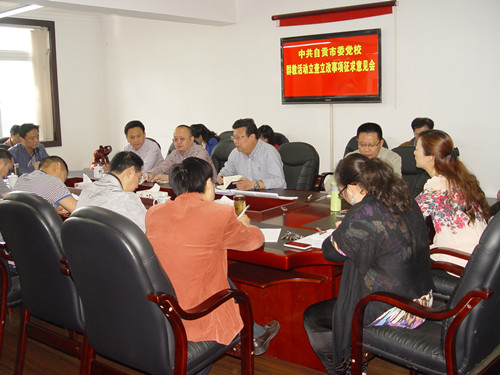 5月6日,自贡市委党校召开专题会议,征求群众路线教育实践活动立查立改事项的意见。校领导班子成员、校群教办工作人员、科室负责人及职工代表20余人参加。