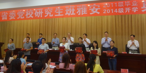 刘毅代表省委党校向顺利毕业的2011级学员表示祝贺,向新入学的 2014级学员表示欢迎,并向学员们提出了要求。一是端正学习态度,明确学习目的。学员们要将在职研究生学习作为不断提升能力、素质,更好完成各项工作任务的良机,努力学习,把知识消化、运用到工作实践中,力争做出更好的成绩。二是把握学习特点,掌握学习方法。要将党校在职研究生教育作为将实践经验与理论相结合的基地,勤思、多问、多学,与教师和同学加强交流,掌握基础理论知识,解决现实问题。三是明确学习要求,增强党性修养。要进一步强化党性修养,端正学风,自觉遵守在职研究生管理的各项规章制度,妥善处理工学矛盾,安排更多学习时间,按时参加集中学习,独立思考,多看书、多思考,促进马克思主义学风的形成。