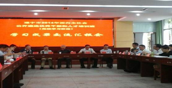 近日,遂宁市委党校召开学员交流会,围绕“我与六大兴市计划”的主题,组织2014年面向社会公开遴选优秀干部和人才培训班全体学员积极参与交流。校党委书记、常务副校长石平,副校长罗润平等参加交流发言,市委组织部纪检员李毅及跟班考察员等出席会议。