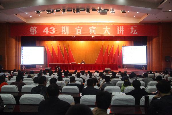 3月31日上午,第43期宜宾大讲坛在市委党校江南会堂开讲。著名经济学家、清华大学经济管理学院教授韩秀云应邀作了《2015年我国宏观经济政策与走势》专题报告。来自全市各机关及区县的领导干部和市委党校第2015年春季学期三个主体班学员共800余人聆听讲座。讲座由市委常委、组织部部长易林主持。