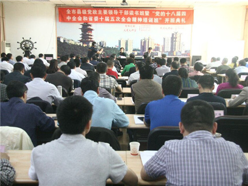 4月27日上午,全市县级党政主要领导干部读书班暨“党的十八届四中全会和省委十届五次全会精神”培训班在市委党校启动,开班典礼由市委常委、宣传部长张学民主持,市委张锦明副书记围绕充分认识本次培训的重要意义、切实增强培训实际效果、确保培训任务圆满完成三个方面作了重要讲话。160余名县市区委书记、县(区)长,各园区党工委书记、管委会主任,市级各部门主要负责人,市属学校、医院、国有企业主要负责人参加本期读书班培训。
