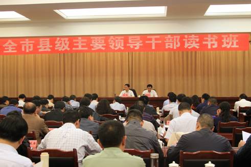 根据安排,本次全市县级主要领导干部读书班培训采取邀请中央、国家部委、中国浦东干部学院、省级部门部分领导以及权威专家作专题讲座与分组讨论相结合的方式开展,集中学习3天,分组研讨1天,共安排了“全面依法治国”、“新常态下新型工业化的探索与思考”、“讲政治、守纪律、守规矩”、“全面从严治党”、“全面深化改革”、“全面建成小康社会”等6个专题讲座。