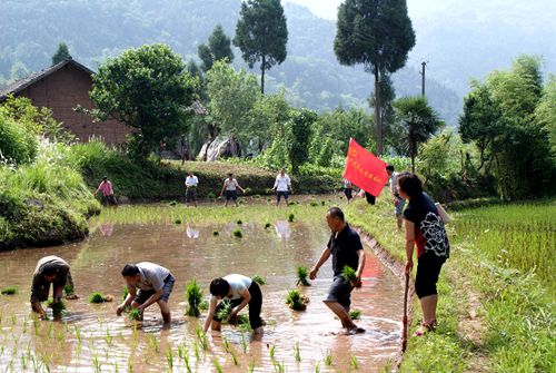 在农户杨绍通家,党员志愿者了解到其小儿子因智力障碍无法参加劳动,劳动力缺乏,田里秧苗还未插。机关党委书记王勇、副县级纪检员李林军当即带领志愿者走进杨绍通家的稻田,有的放线,有的抛秧苗,有的插秧。通过一天努力,杨绍通家秧苗全部栽插完毕。过路的群众看到党员干部挥汗如雨插秧的情景,感慨到:“现在的干部真不错,不仅有一副为民服务的热心肠,插秧也插得有模有样!”