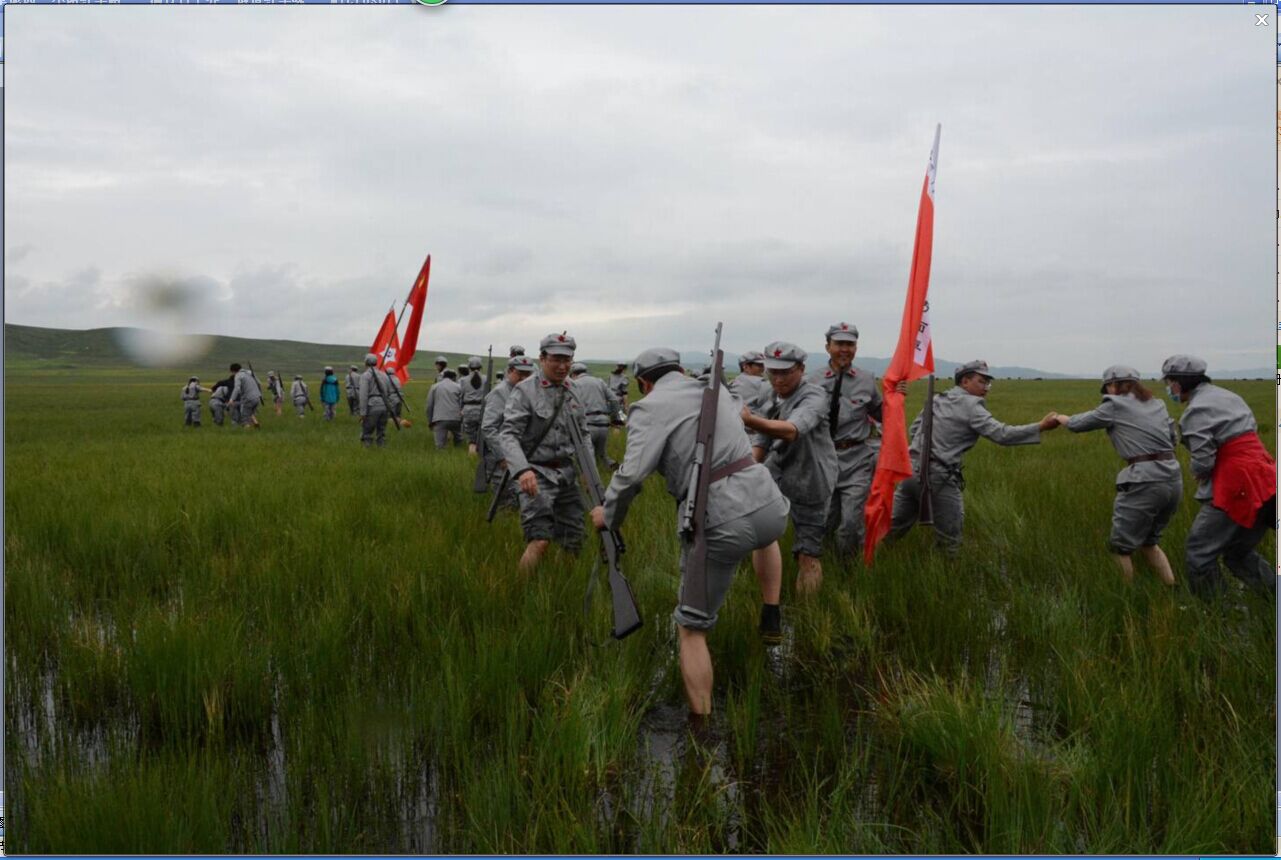 为缅怀革命先烈,追忆伟大壮举, 6月19日上午,阿坝州2015优秀年轻干部人才递进班学员心怀崇敬之心,身着红军服装,来到红原县国家湿地公园日干乔开展体验式教学。