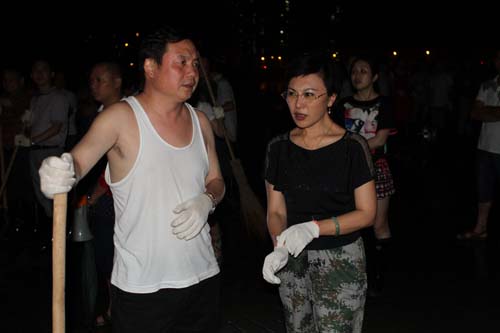 在常务副校长谭盛刚的带领下,教职工迅速赶赴洪水过境留下大量垃圾的滨河路塔沱段,投入到紧张忙碌的清除垃圾和淤泥的战斗中。有的挥起铁锹,有的推拉着自制清淤工具,有的握着冲洗水管,有的舞动扫帚,全然不顾自己满身的污泥,认真清除路面。