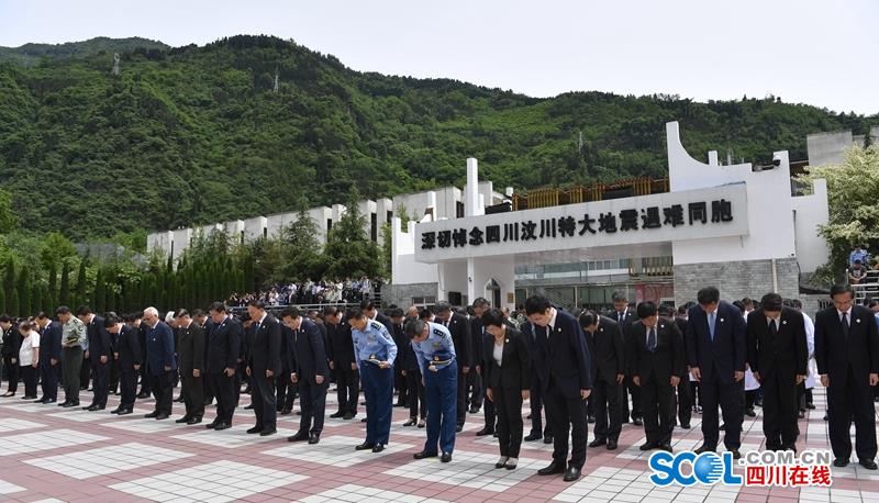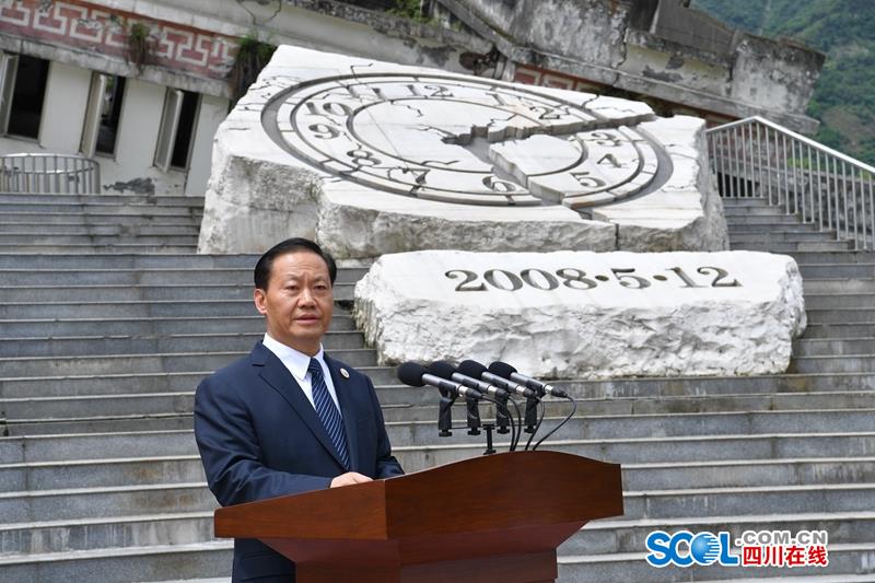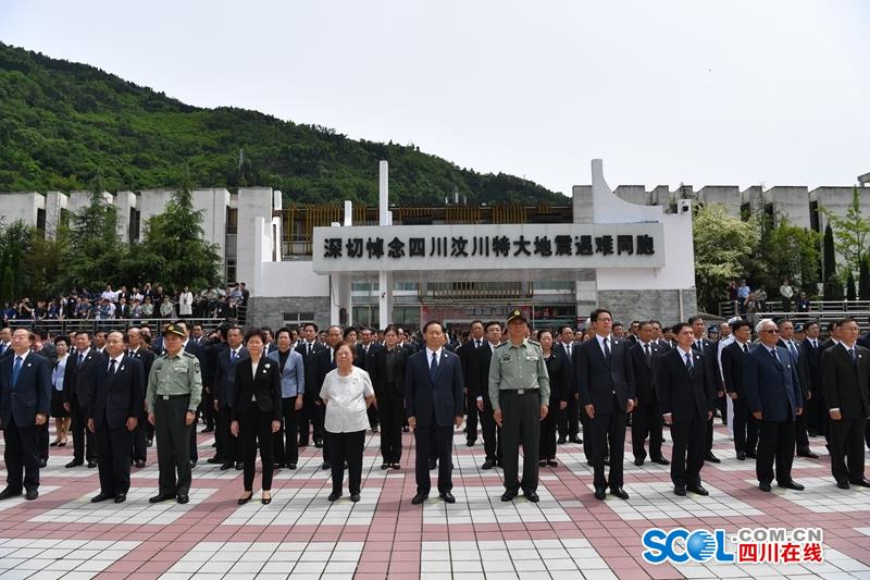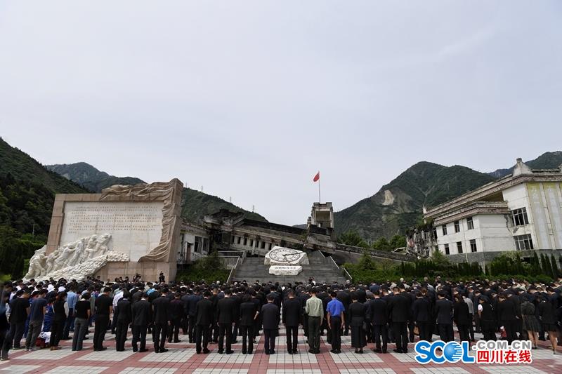 四川在线消息 (记者 张守帅 摄影 欧阳杰 何海洋 田为) 5月12日14时28分,在十年前汶川特大地震发生的时间节点,四川省在汶川县映秀镇举行“5·12”汶川特大地震抗震救灾十周年纪念仪式,深切悼念在地震灾害中不幸罹难的同胞和在抗震救灾中捐躯的英雄,传达学习习近平总书记、李克强总理关于防灾减灾重要指示批示,要求全省上下继续弘扬伟大抗震救灾精神,把对党、对祖国、对全国人民的感恩之情转化为做好各项工作的实际行动,奋力推动治蜀兴川再上新台阶。