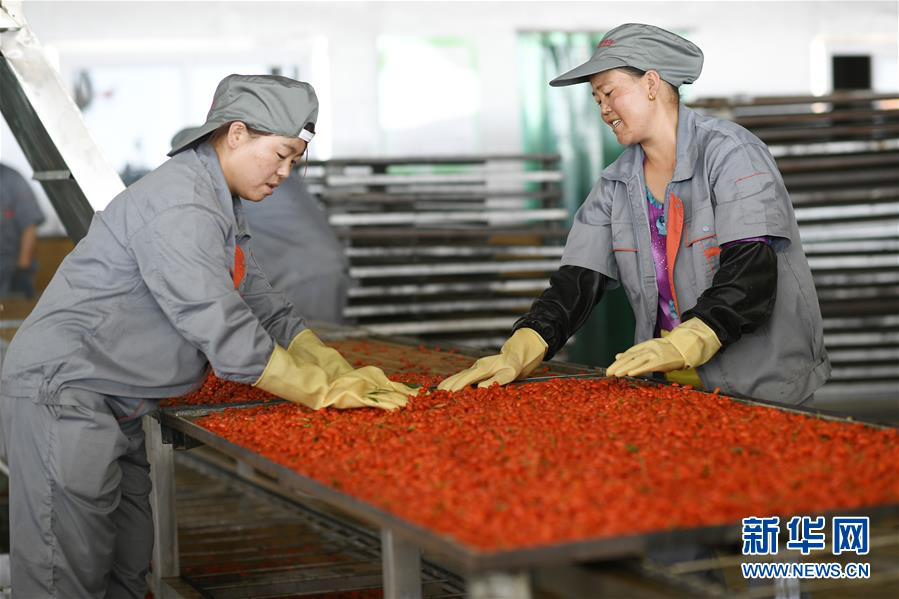 在宁夏同心县润德庄园枸杞基地,工人在清洗鲜枸杞(6月22日摄)。 新华社记者王鹏摄