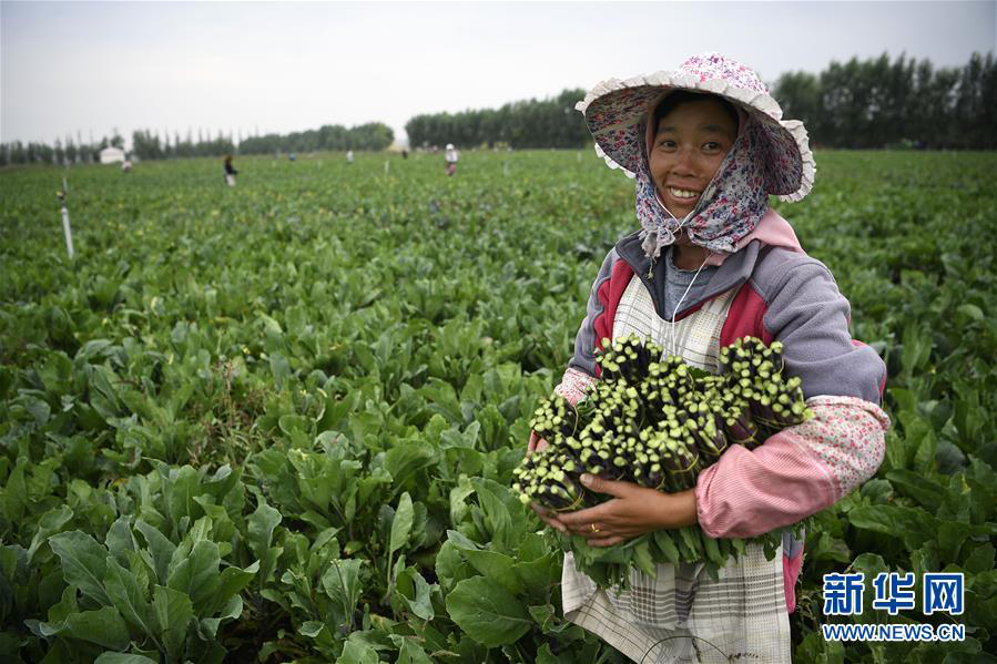 在固原市原州区彭堡镇姚磨村,村民在蔬菜基地收获蔬菜(8月27日摄)。 新华社记者王鹏摄