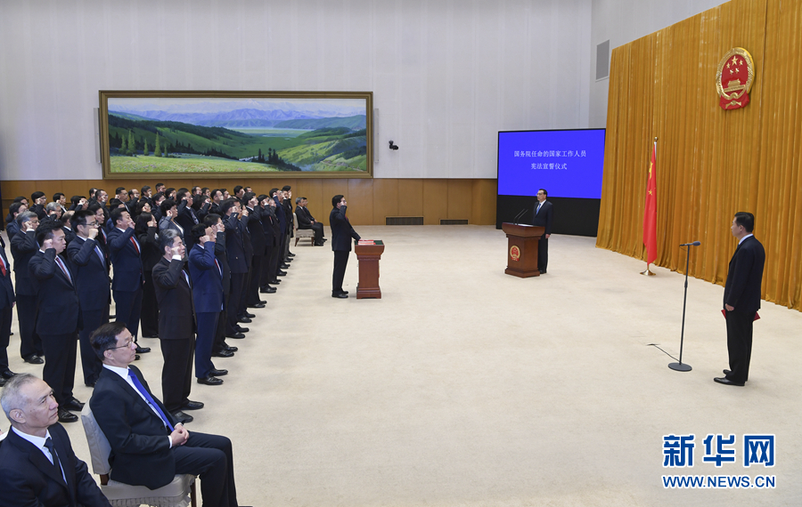 11月20日,国务院在北京中南海举行宪法宣誓仪式。国务院总理李克强监誓。 新华社记者 张领 摄