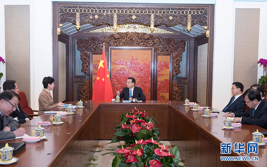 12月17日,国务院总理李克强在北京中南海紫光阁会见来京述职的香港特别行政区行政长官林郑月娥。 新华社记者王晔摄