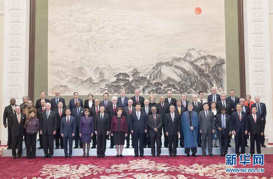 12月12日,国家主席习近平在北京人民大会堂会见出席“2018从都国际论坛”外方嘉宾。这是会见前,习近平同外方嘉宾集体合影。 新华社记者 王晔 摄