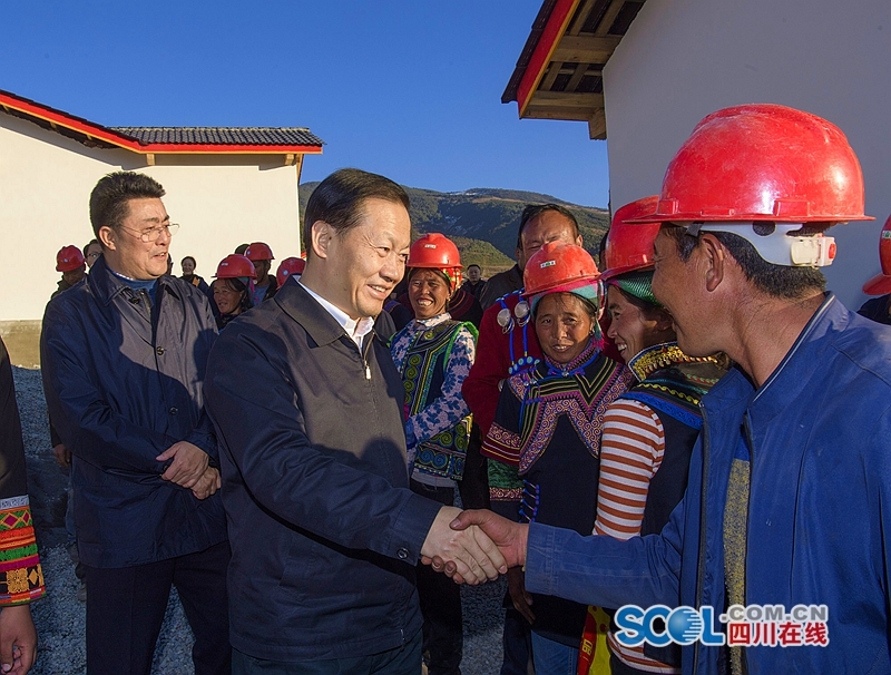 1月2日,省委书记彭清华到凉山州昭觉县普诗乡李子村调研,了解脱贫攻坚工作推进情况,看望慰问在易地扶贫搬迁安置点参与房屋建设的当地彝族群众。