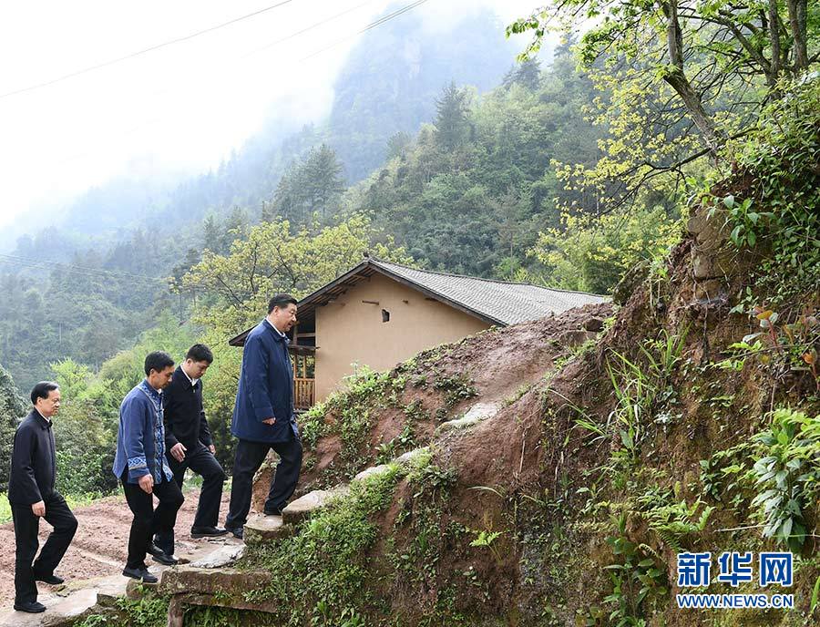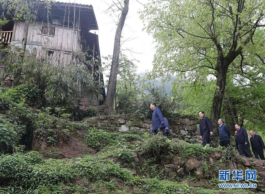 4月15日,中共中央总书记、国家主席、中央军委主席习近平在重庆考察调研。这是在石柱土家族自治县华溪村,习近平徒步前往农户家中,实地了解脱贫攻坚工作进展和解决“两不愁三保障”突出问题情况。 新华社记者 王晔 摄