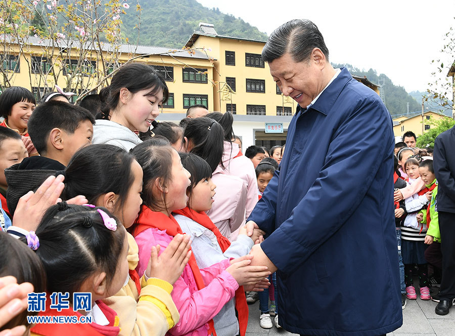 4月15日,中共中央总书记、国家主席、中央军委主席习近平在重庆考察调研。这是习近平在石柱土家族自治县中益乡小学同学生们亲切交流。 新华社记者 谢环驰 摄